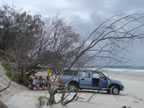 Bribie Island is only one hour north of Brisbane city centre which is very handy for a visit. It is a 31km long island linked by a bridge across the Pumicestone Passage with a lot of it declared National Park. You can 4WD on about 25km of the surf side beach and camp along a 3km strip of that beach. Want to see Photos and Stories of other places in Australia? Use the Australia map to select another. |