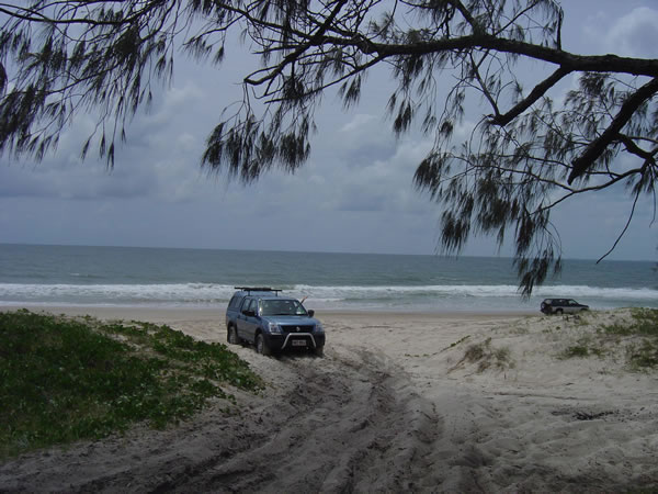 Bribie IslandNot all the dunes are high. The area where you can camp is quite a flat drive into the campsite which means we can probably bring the offroad camper in here without a problem. Most of the island is declared national park and this campground (no facilities) is part of that park. As far as the van goes the hardest part would be getting onto the beach at the start and then up from the beach to the campsite. Previous | Album | Next |