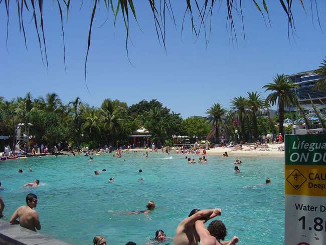 Brisbane Day TripsThe Bike Track winds passed SouthBank beach and pools. A lifeguard is on duty and scuba diving lessons are held in the deeper areas. You can stop for a coffee or a meal just off the side of the track if you need a break. Previous | Album | Next |