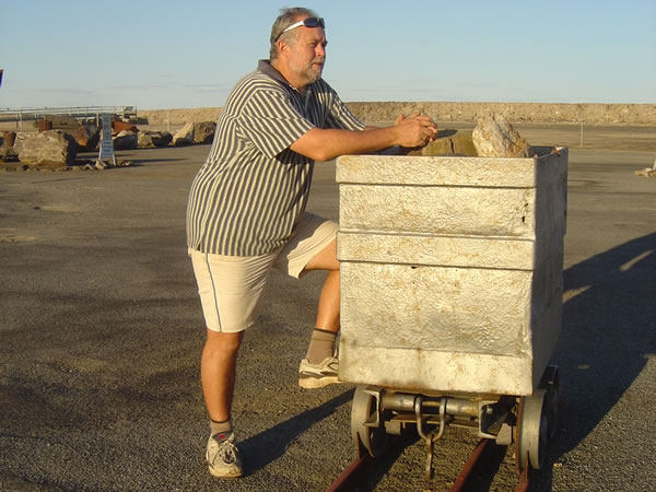 Broken Hill, New South WalesThe view of the surrounding area is great from up here. Time for a break on one of the biggest seats I have been on. Pete found a mine trolley to rest on. We booked the restaurant and came back in time to catch the fireworks over the sports ground that evening. Previous | Album | Next |