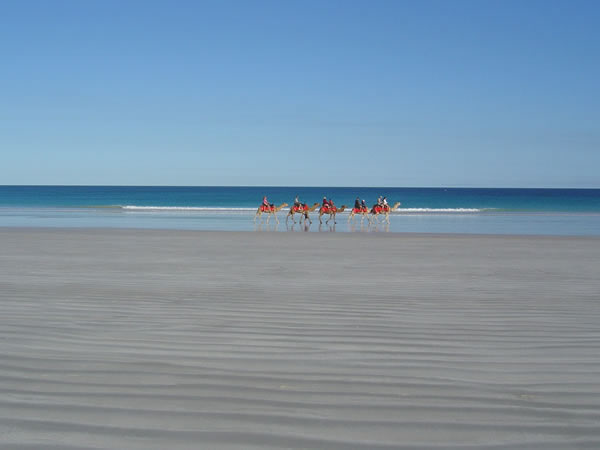 Broome, Western AustraliaOne of the things Broome is known for is its beaches. Cable Beach has beautiful white sand and clear turquoise blue water - great for swimming or a camel trek. Cable Beach got its name from the telegraph cable laid between Broome and Java in 1889, connecting Australia's North West with the world. Previous | Album | Next |