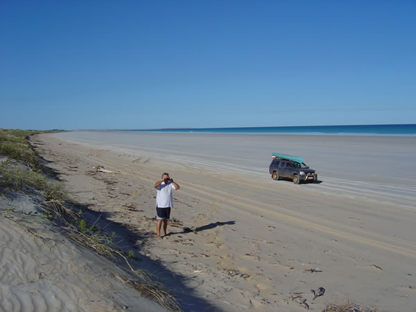 Broome, Western AustraliaNext day we went for a drive up Cable Beach at low tide. It is 22km long. It is a lovely beach with its white sand, gentle rolling waves, red cliffs contrasted against the turquoise waters of the Indian Ocean. The best swimming is at the southern end. Previous | Album | Next |