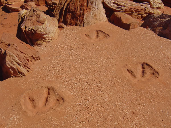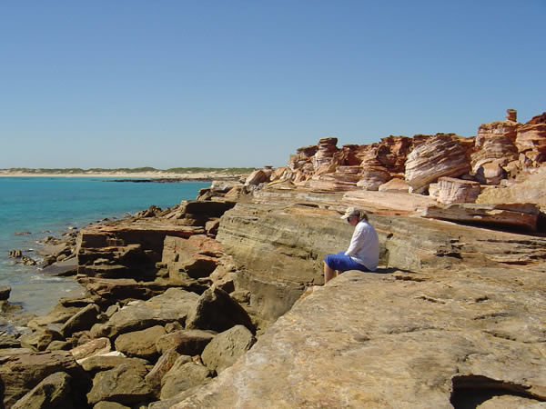 Broome, Western AustraliaOn the point theer are Dinosaur footprints in the rocks that were made 130 million years ago. Experts say they are from a carnivorous 3 metre high dinosaur from the Cretaceous Period. There is a cast made of the dinosaur footprints at the point as you can only see the real thing at very low tides - it is 30 metres out from the point. Previous | Album | Next |