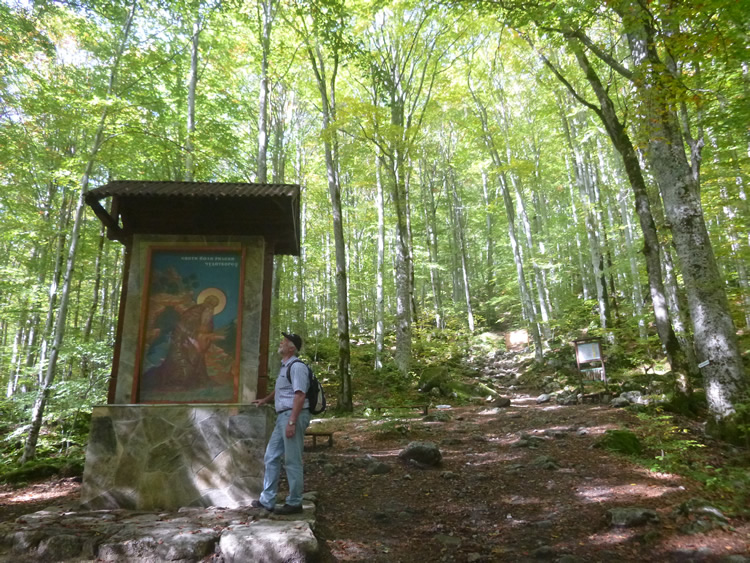 UK and Europe Roadtrip - Rila National PkThis is the Monks Memorial which describes the burial cave and church that we will see further along the track. The Rila National Park (called a Nature Park in Bulgaria) showcases historical and religious sites along with these natural surroundings. Select the photo below to see more. Previous | Album | Next |