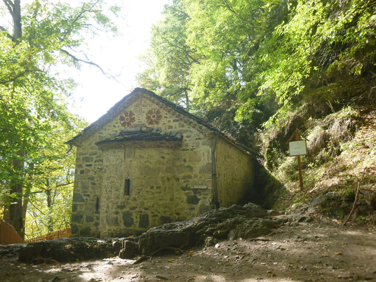 UK and Europe Roadtrip - Rila National PkThere are a number of cloisters and small churches that were used by the monks of Rila Monastery. This is typical of one of the churches. Inside the walls are decorated with religious frescos and icons. Outside is a track to a burial cave. Select the photo below to see more. Previous | Album | Next |