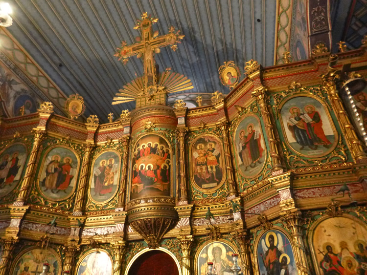 UK and Europe Roadtrip - PlovdivThe iconostasis or icon screen is meant to be a separation between the everyday world and the sacred and is where the priest would enter the church. They are ornately decorated and painted with icons of religious figures. Select the photo below to see one of the frescos from the 1800s. Previous | Album | Next |