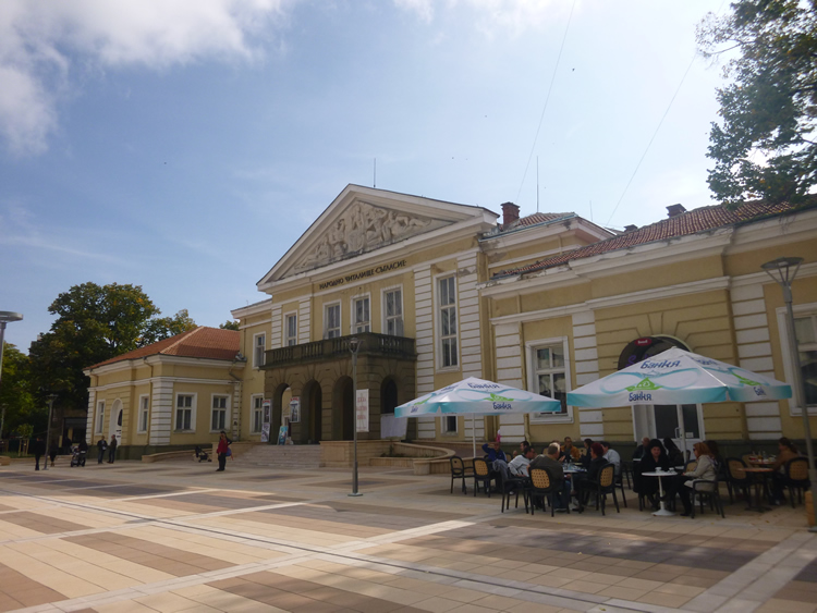UK and Europe Roadtrip - YambolWe stopped for a coffee outside the Nevena Kokanova Drama Theatre in Yambol. This building has been here since the 1800s. Select the photo below to see one of the newer buildings we passed as we left Yambol continuing east towards Burgas. Previous | Album | Next |