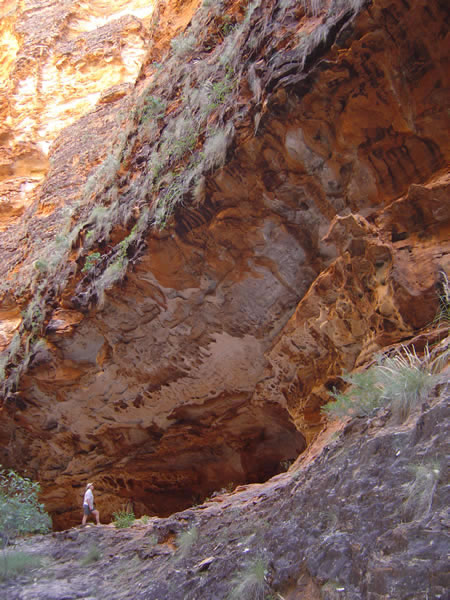 Purnululu National Park - Bungle BunglesAfter the walk wound its way through the iconic bee hives, we headed down between two walls of rock that opened up into Cathedral Gorge. Water has gouged out the rock in this area to leave an enormous overhang. The patterns left in the coloured rock are just amazing. Previous | Album | Next |