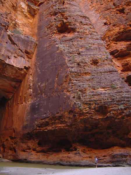 Purnululu National Park - Bungle BunglesThe Cathedral Cavern is enormous... I wish I had a wide angle lens for my camera. Pete is near the pool of water which gives you an idea of the size. The acoustics are so good apparently that concerts have been held here within the gorge. Previous | Album | Next |
