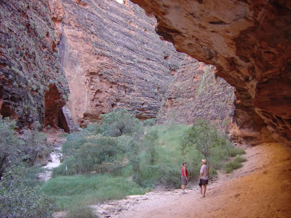 Purnululu National Park - Bungle BunglesWater pounding through Cathedral Gorge in the wet season has created the huge amphitheatre of red rock. Heading back down the track again, you can't help but take photo after photo as a reminder. Previous | Album | Next |