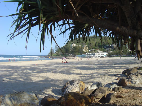 The main swimming beach at Burleigh is sheltered by the Hill and forms good