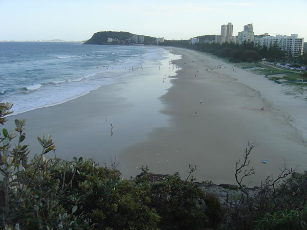From the top of the Miami Rock you see right down the beach to Burleigh