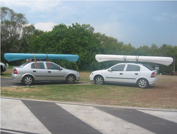 Canoe Trip - Lake Catharaba ...QueenslandWe didn't quite make it to Lake Weyba before the brewing storm and lightning threatened to hit. A night at a friend's house to recover and we were off home again the next day. Surprisingly, the canoes fit pretty well on top of the Holden Astras. |