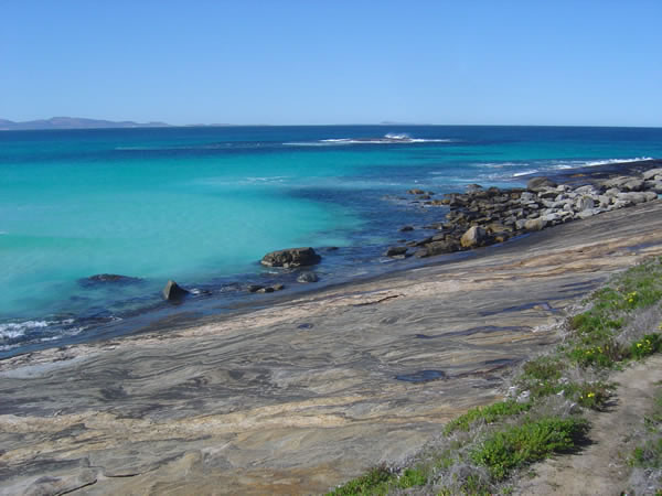 Cape Arid National Park, WAThis photo is taken from the same spot again, this time looking further east towards Cape Arid in the Distance. That is where we are heading next. At the western end of Yokinup Bay, Cape Arid National Park is 125km (1.5 hours) east of Esperance. Previous | Album | Next |