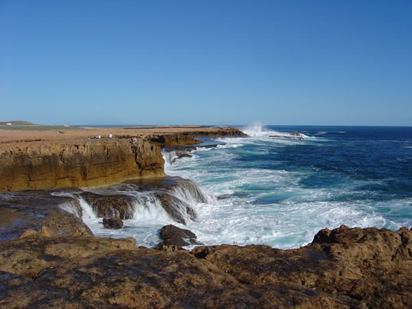 Looking south from the blowhole you can see some people fishing from the cliff edge - crazy people. The rocks are razor sharp jagged limestone and the waves are huge and powerfull.