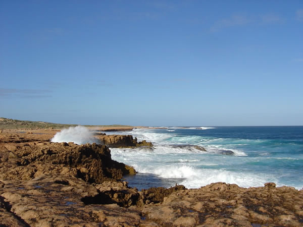 Carnarvon Blowholes to Red BluffBig snapper, trevally, spangled emperor, coral trout, queenfish, cobia, mulloway, barracuda and mackerel lure fishermen here year after year to take their chances. Life Rings are placed strategically along the cliff tops and you can see why. We spotted a whale here out to sea about 500m. Previous | Album | Next |