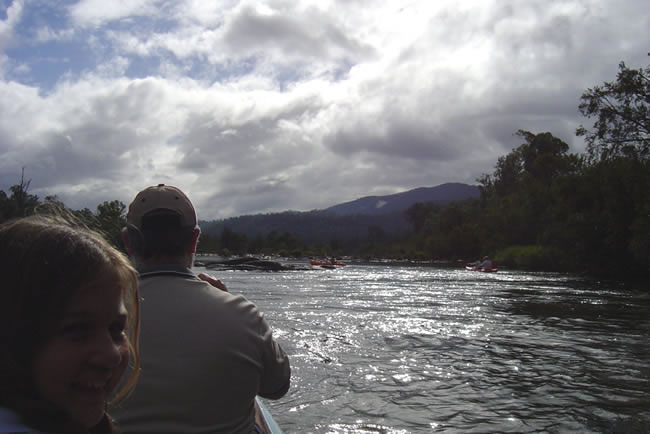 Mann River, Clarence Valley, NSWThere hasn't been rain here for a while although the clouds were building up and looking like that might change. When the river is higher the rocks would not be as much of a problem for the canoe - not as much fun though. Previous | Album | Next |