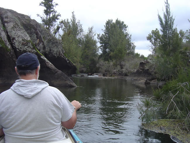 Clarence River Valley, NSWThe next day we put the canoe in the Severn River and headed up as far as we could paddle. It is all granite country around here with large boulders scattered all over the countryside with the river snaking between and tumbling over them. Previous | Album | Next |