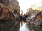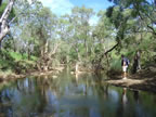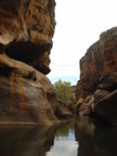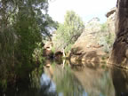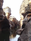 | We turned off the Savannah Way at Georgetown and headed south to Cobbold Gorge on Robin Hood Station. It is a working brahman cattle station that also offers accommodation and tours through the gorge and surrounding sandstone escarpment. The road in is bitumen for a third of the way and gravel the rest. Considering the amount of rain they had recently it was pretty good with only a couple of creek crossings that had a small amount of water over the road. Missed the last web album? See Photos and Stories of Atherton Tablelands or use the Australia map to select another. |