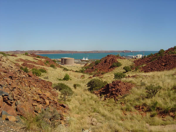 Dampier - Burrup PeninsulaDampier is named after the English buccaneer William Dampier, who visited in 1688. From here we have a view of the Dampier wharf and the iron ore loading facilities. Pilbara Iron exports millions of tons of iron ore every year from its Dampier facilities. There is a Pilbara Iron Port facility tour you can go on to learn all about the crushing, stockpiling and loading processes. Previous | Album | Next |