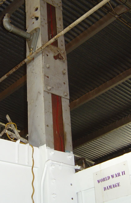 Darwin, Northern TerritoryThis is the old armory and workshop for servicing planes for World War 11. It has now been converted into a museum for old vehicles and machinery. You can still see the damage caused by the bullets from japanese aircraft flying over Darwin in this hangar (SEE photo). Also found amongst the items in the old Qantas hangar was an unusual 'Tapestry'. Previous | Album | Next |