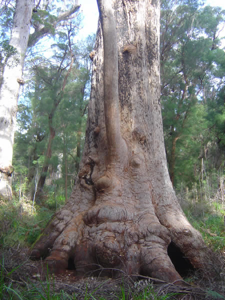 Tingle Forests, Denmark to Cosy CornerBack on ground level you get a different view of the tingle forest. Some of the older trees on the 'Ancient Empire' walk are up to 16m in circumference. This one wasn't that large but we thought it had character. Can you see the 'face'? Previous | Album | Next |