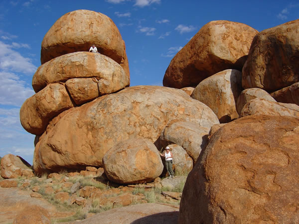 As you can see in this photo, they weren't small boulders that make up the Devils Marbles. That is Gary way up high between two boulders and Karen at the base of this 'sculpture'.