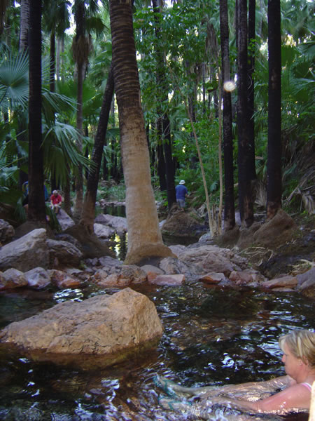 El Questro , Wilderness Park, Gibb River RoadZebedee Springs was another nice walk. There is a permanent thermal spring surrounded by Livistona Palms and sheer cliff faces which tumbles down a creek making a a series of small pools. The water temperature is 28 - 32 degrees all year round. Previous | Album | Next |