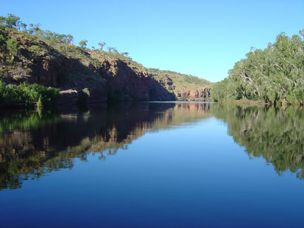 El Questro , Wilderness Park, Gibb River RoadYou can take a boat cruise up the Chamberlain River or hire a boat yourself. As there are saltwater crocodiles in this river the canoe was not an option. The Chamberlain Gorge is 150km long and winds through the Durack Range. Previous | Album | Next |