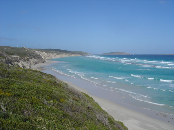 Mason Bay to EsperanceTravelling east again along the coast to Esperance, we stopped at Ten Mile Lagoon and on the dunes we spotted another wind farm. There are always reliable winds around here for electricity generation and they make the most of that. Previous | Album | Next |