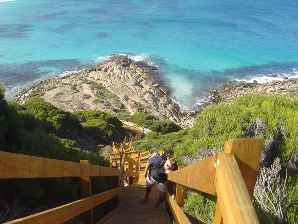 Mason Bay to EsperanceThere were many places along the Great Ocean Drive where you could stop and access beaches, lookouts or fishing spots. This was the LONG staircase down to the beach at one of the bays! The water looked so beautiful and inviting we decided we had to go down. Previous | Album | Next |