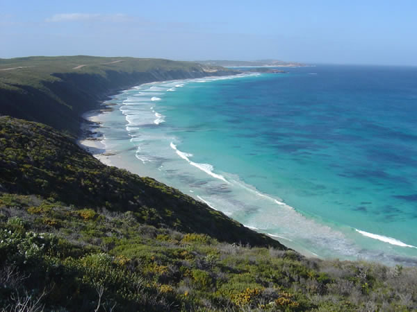 Mason Bay to EsperanceThe Great Ocean Drive (not to be confused with The Great Ocean Road in Victoria) continued along the cliff tops, hugging the coastline, giving you spectacular views of the brilliant blue bays. It is a 40 km circular loop drive and one of the must-dos while in Esperance. Previous | Album | Next |