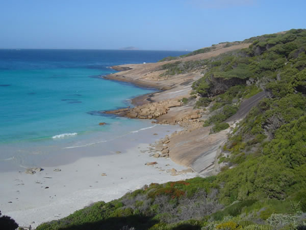 Mason Bay to EsperanceJust down the road from Twilight Beach we saw a number of people fishing off the rocky headland at Salmon Beach. The region is famed for its salmon fishing hence the name. It is not a swimming beach but is a very scenic beach all the same. It is the place to come to see the waves that crash on the rocks during winter storms. Previous | Album | Next |