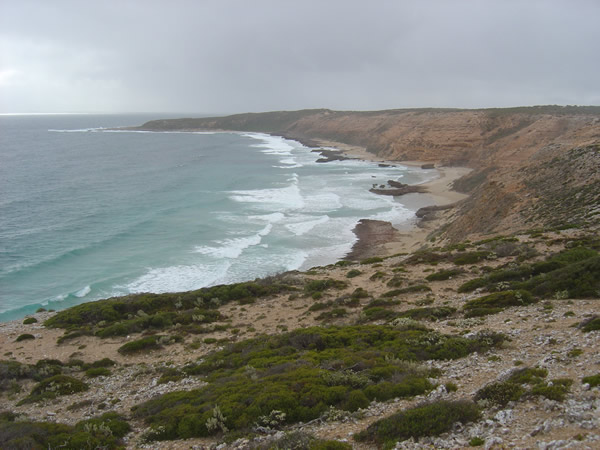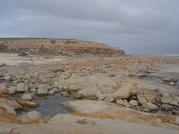 Eyre Peninsula, SAOnce we reached Ceduna the petrol prices dropped by 50c per litre AND they sold our favorite iceblocks, Maxibons. We hadn't been able to get them since Northern Territory. We stopped next at Streaky Bay and did the tourist drive past The Granites, High Cliffs and Smooth Pool. This part of the coastline was very scenic but the overcast weather meant the photos didn't turn out very well.. Previous | Album | Next |