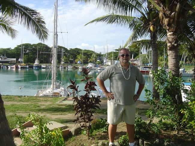 Fiji Holiday - Vudu Point MarinaWe weren't introduced to "Fiji time" until we reached Vuda Marina. The flight was on time, going through customs was very fast and the "Green Turtle" consultant, who we booked our first 5 nights through, was there waiting for us with a shell lei greeting and the shuttle bus in the carpark. Apart from the driver and the consultant we had a "tour guide" who was very interesting and filled us in on some of the history of the people and the area as we drove the 20 minutes north of the airport to Vuda Point Marina. The speed boat to transfer us to Bounty Island was booked for 4:15pm. After a quick phone call when we arrived, the consultant assured us he would be there at 4:30. We were happy to sit for a while and soak up the surroundings so assured them we were fine and they left. The boat certainly did arrive at 4:30 - again so far so good. Lovelove (yes that is his real name) explained that the driver of the boat had to wait for some other passengers before we left but it wouldn't be long. We were happy with that and he proceeded to keep us company and tell us all about his nearby village, fijian culture and social structure, the "first landing" which occurred near here and he pointed out all of the islands. Fiji time! We didn't leave until 5:45pm.We felt we knew a fair bit about fijian culture and history by then though so it was time well spent. Previous | Album | Next |