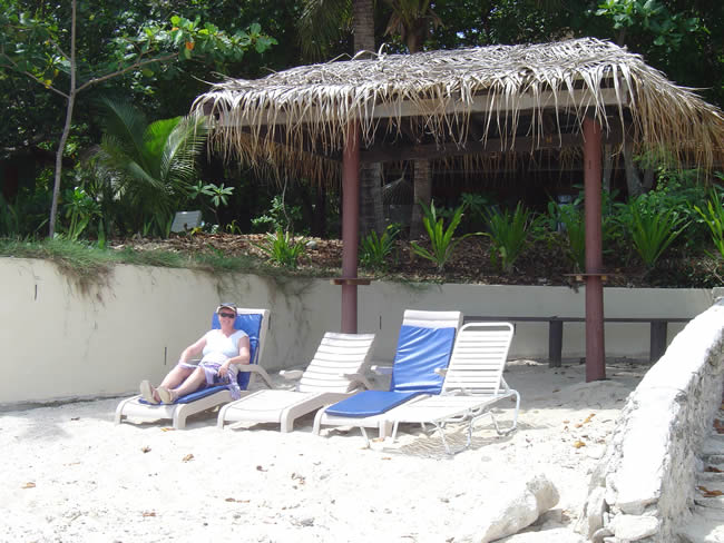 Fiji Holiday - Bounty & Treasure IslandsWhile waiting for the boat to take us 'home' to Bounty Island we made good use of the deck chairs and shaded areas scattered along the beach. We chose to swim in the sea rather than the pool as its water was cloudy. In this heat it would be hard to keep the pool in top condition amd with such great ocean swimming you don't really need a pool. Previous | Album | Next |