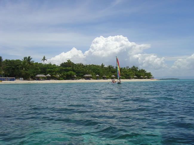 Fiji Holiday - Bounty & Treasure IslandsThis photo is taken looking down Treasure Island's main beach towards Bounty Island in the distance. The water is not as calm here as it is less protected from the wind on this side of the island. Previous | Album | Next |