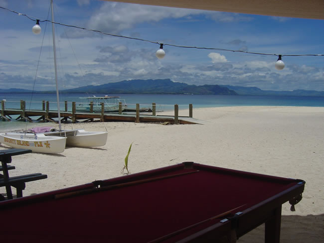 Fiji Holiday - Bounty IslandWe played a bit of pool although having it on the sand may not have pleased the serious players out there. You had to account for the lie of the table and take care not to lean on the edge while taking a shot. The small catamarans didn't seem to leave the beach the whole time we were there. We were all pretty busy doing nothing much at all. Previous | Album | Next |