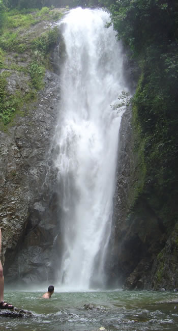 Fiji Holiday - Viti Levu IslandThe swim in the pool was lovely. The force of the water going over the falls meant that you couldn't swim anywhere near the base of the falls - the current it made was too strong. We headed back the same way we came but at the top of the falls we climbed up we had a choice of jumping into the pool below or climbing down the ropes. The ropes were so tricky that most chose to jump the 4 metres - it was the lesser of two evils! Previous | Album | Next |
