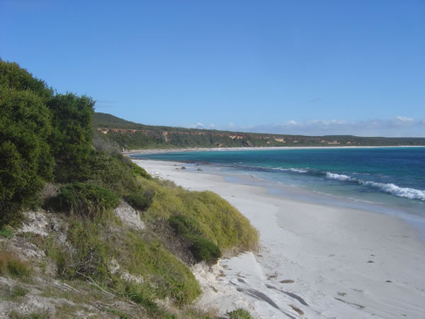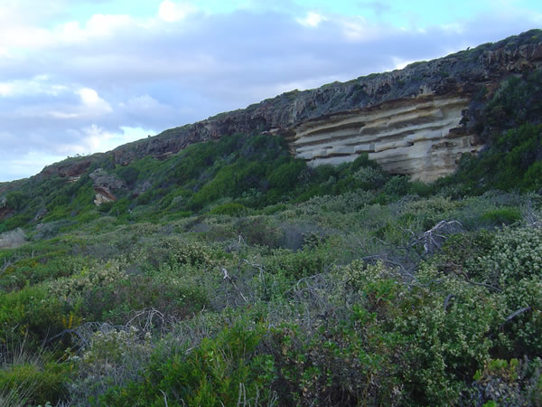Cape Riche to Bremer BayWe walked along the beach in front of the campground at low tide around to Schooner Beach. At one point we had to climb up and around the cliffs to get past the water. It was interesting to look at the cliffs up close. Previous | Album | Next |