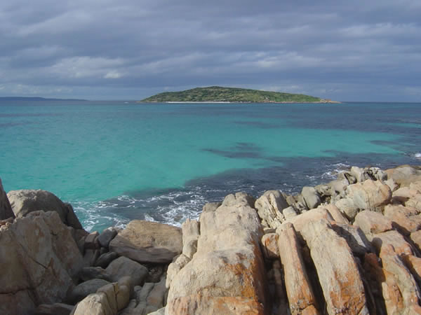Cape Riche to Bremer BayHeading around the beach in the other direction, we climbed over the rocks on the point looking for shells. The water looking out towards Cheyne Island was a beautiful turquoise colour even on this windy overcast day. Previous | Album | Next |
