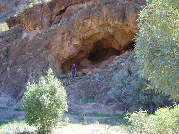 Flinders Ranges National ParkThis was near one of the bushcamping camping sites in Brachina Gorge. All bushcamps have toilets and firepits with cooking grills but limited water available and it is recommended that you carry your own water. The eroded areas on the side of this cliff are small shallow caves. I climbed up to explore one of these caves. Previous | Album | Next |