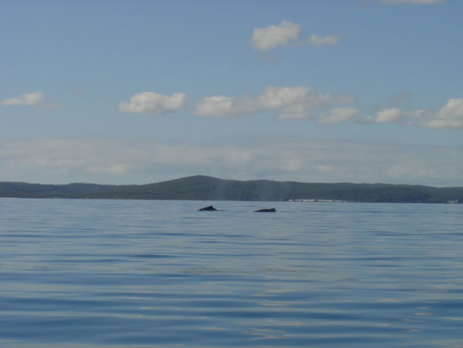 Fraser Island 2004 - QueenslandA took photos of many whales doing many things but I seemed to always click but the photo didn't snap until they were under the water again!!!! This was the best photo I ended up with. We watched one VERY big whale breaching, slapping the water with his pectoral fin and tail and blowing water from his spout. This went on for ages BUT by the time we got the boat close enough for a photo the whale decided the show was over! Previous | Album | Next |
