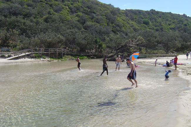 The mouth of Eli Creek changes where it enters the ocean each year and some years can be difficult to cross. You should aim to cross it within two hours of low tide.