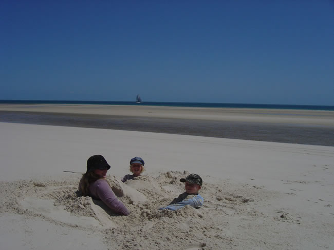 Fraser Island, QueenslandCoongal Creek can be dangerous to cross as it is fast moving and the creek depths and best places to cross change each time you come. We prefer to cross as close to low tide as we can so we set up a makeshift camp and out come the drinks and nibblies while we wait. Always walk across this creek first before driving it even if it LOOKS perfectly safe. Previous | Album | Next |