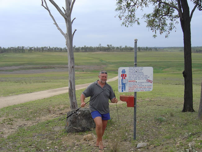 Wuruma Dam, EidsvoldNoel & Shirl caught up with us again at Gayndah then we headed off to Waruma Dam on the Nogo River near Eidsvold. As you can see there is not a lot of water in this dam. This is the boat ramp!!! and a sign about the fish that are stocked here!!! I can imagine it would be lovely here if only there was some water. Previous | Album | Next |