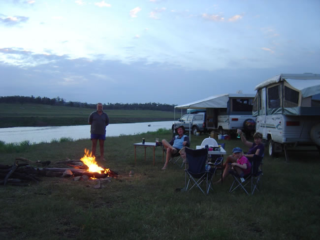 Wuruma Dam, EidsvoldRelaxing by the Nogo River we cooked dinner on the campfire and enjoyed our last night before heading home next day. Years later we came back to camp on Waruma Dam and had a wonderful week there. It was full of water this time. Previous | Album | Next |