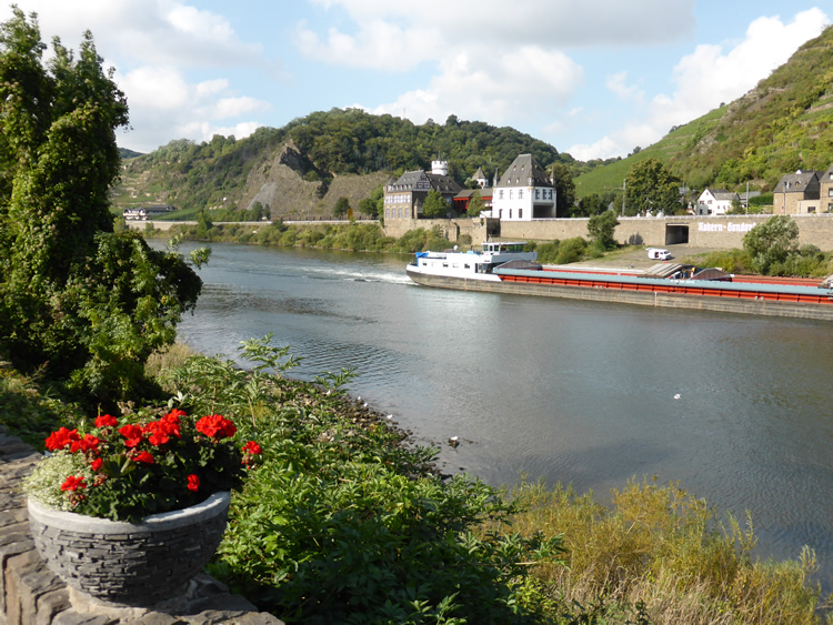 UK and Europe Roadtrip - Koburn GondorfWe are travelling on an ancient Roman roadway that followed the Mosel River. The remains of a Roman wineboat from the 1st to 3rd centuries were found in this Mosel Valley region. Another barge makes its way passed the village of Koburn-Gondorf. The river fortress on the other side of the barge was originally built in the 1100s. If you look closely you can see that when the M1 was built they tunnelled through it rather than tear it down. Previous | Album | Next |