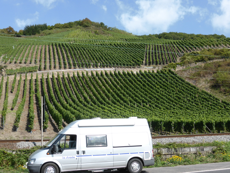UK and Europe Roadtrip - Rhine Scenic RouteHaving left the Mosel River where it meets to the Rhine near Koblenz we decided to head south along the Rhine River. There is a road both sides of the river and it looks like this will be a similarly scenic route with historic towns, vineyards and castles everywhere! Select the photo below to see the busy Rhine River. Previous | Album | Next |