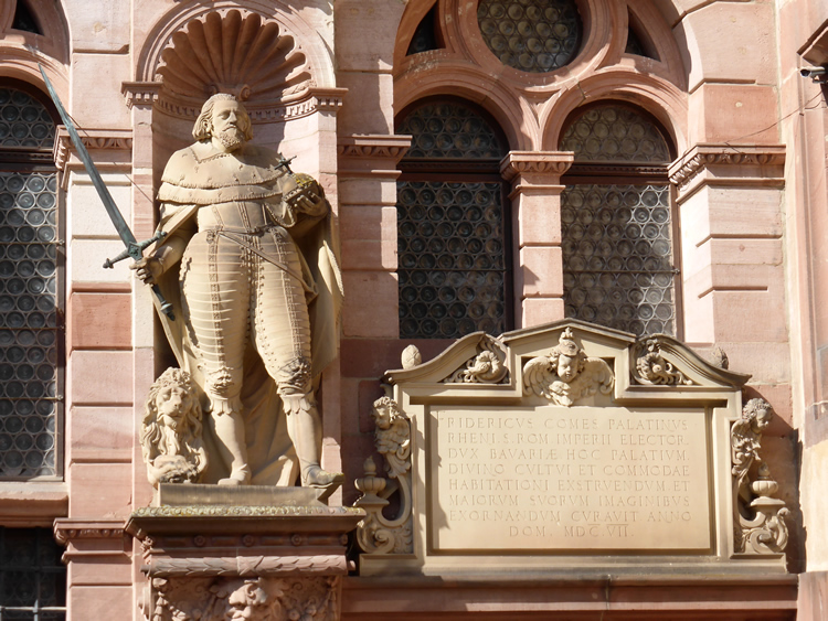 UK and Europe Roadtrip - HeidelbergFrederick IV died at 36 in the year 1610. He ruled the Electorate of the Palatinate and was known as the Imperial Elector of the Rhine in the Holy Roman Empire. The plaque beside this statue has the roman numerals for 1607. Select the photo below to see more statues of various rulers. Previous | Album | Next |